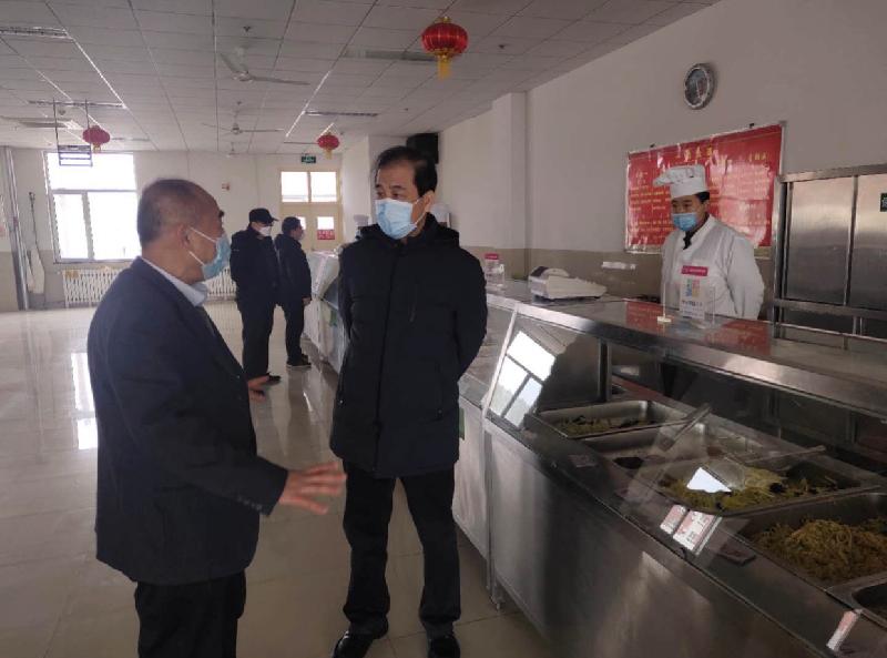 3月2日上午,副院长孟庆旭来到长清校区教工食堂,看望慰问工作人员,实地察看了食堂饭菜花样品种、质量价格和环境卫生、消毒消杀情况,听取了山交教育咨询服务公司负责人关于食堂疫情防控措施、员工管理、食品安全、饭菜品种以及供餐服务时间等情况的汇报。他指出,目前正值全国上下疫情防控的关键时期,教工食堂担负着教师职工的餐饮保障任务,责任重大;并提出了四点要求:一要确保上岗人员身体健康,食堂工作人员必须严格执行“双测温两报告”制度,按照“一人一档”建立健全员工健康档案。二要扎实做好餐饮服务保障工作,对食材采购、加工、储存等严格把关,确保卫生安全。三要不断丰富食品花样,保证质量,让教职员工吃得舒心、吃的放心。四要保持就餐环境卫生、整洁,既要做好就餐环境、餐具的彻底消毒,又要保持空气清新,注重餐具存放保洁,防止餐具被污染。