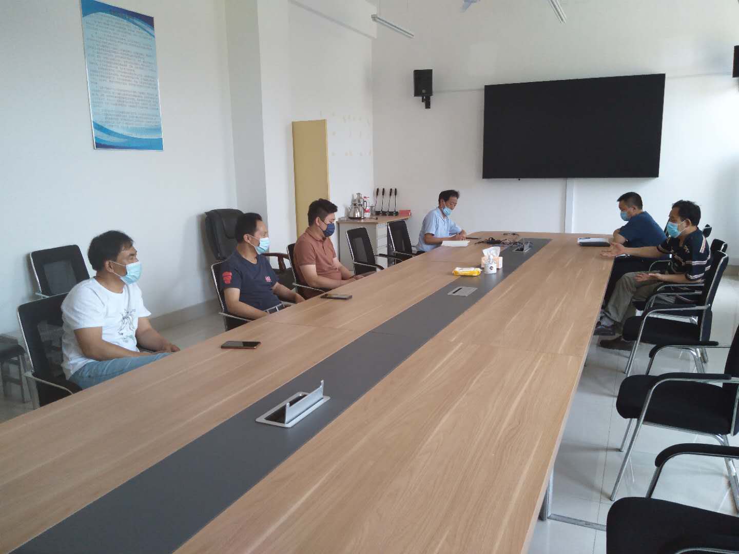 5月25日下午,后勤管理处召集长清校区浴室、开水房的三家承办企业,在后勤管理处会议室召开会议,对浴室、开水房的防疫消杀工作做了部署和培训。校医院院长沈秀峰讲解了常用消杀药剂的特点、配比方法和喷洒、擦拭、通风的科学做法。后勤管理处负责人强调了学生聚集场所的从业人员健康、安全卫生和疫情防控对上述场所的要求。会议要求各相关企业科学使用消杀药剂,准确填写消杀纪录。学校为承办企业配备了所需的84消毒液、酒精、喷雾器、喷壶、量筒、手套、护目镜等物资。三家承办企业管理人员参加了此次培训。