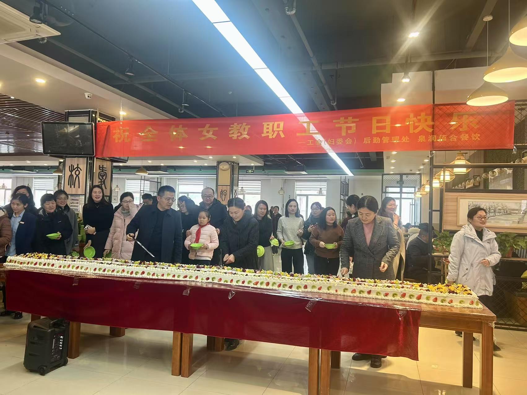 3月7日中午,由学校工会(妇委会)、后勤管理处主办,泉润佰合餐饮管理有限公司承办的“三八”妇女节庆祝活动在秋实园餐厅举行。副院长徐静、工会主席闫晓阳、后勤管理处处长张开文出席活动。
